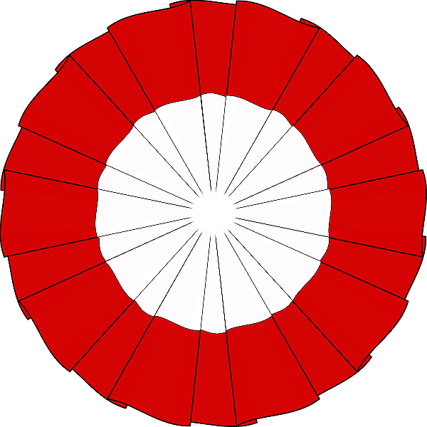 3) składają się z dwóch okręgów: białego centralnego oraz okalającego go czerwonego, o średnicy 40 do 60 mm, przy czym promień okręgu białego powinien stanowić ½ promienia kokardy.” – stanowi dokument.