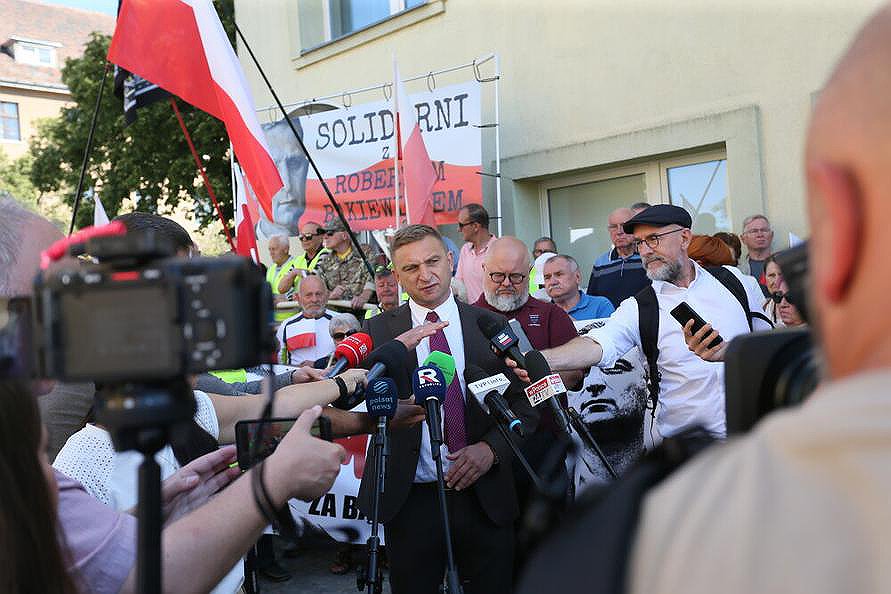 W poniedziałek rano pod siedzibą gorzowskiej prokuratury pojawiło się kilkadziesiąt osób popierających Bąkiewicza, którzy skandowali np. hasła: "hańba", "zdrajcy" i "jesteśmy razem". Część ze zgromadzonych miała odblaskowe kamizelki z napisem "Ruch Obrony Granic".