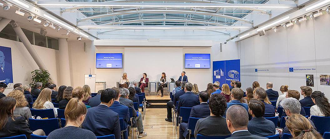 Wydarzenie „Beyond the Noise: Protecting Democracy from Disinformation" przyciągnęło znacznie większą publiczność, niż oczekiwali organizatorzy. Sala wypełniła się przedstawicielami korpusu dyplomatycznego – w tym kilkoma ambasadorami, dziennikarzami czołowych mediów austriackich, studentami oraz reprezentantami wiodących think tanków. Wśród obecnych byli m.in. dziennikarz jednej z najbardziej opiniotwórczych gazet w Austrii „Die Presse” – Burkhard Bischof, redaktor wydziału polityki zagranicznej Austriackiej Agencji Prasowej – Stefan Vospernik, dyrektor prestiżowego Instytutu Nauk o Człowieku w Wiedniu – Misha Glenny.