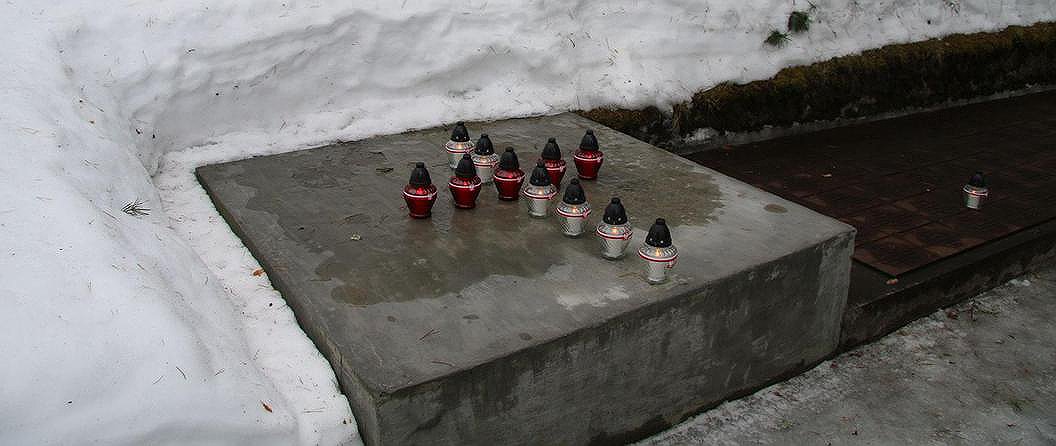 Na miejscu usuniętych odznaczeń wojskowych ułożono ze zniczy symboliczny krzyż.